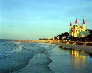北海银滩沙细如粉、色泽如银、绵延24公里,宽300——7000米不等,平缓无礁,水质洁净清澈,是世界上少有的洁净、广阔的海滩。由于海水退潮快,涨潮慢,沙滩自净能力强,游泳安全系数高,享有“南方北戴河”、“天下第一滩”、“东方夏威夷”的美誉。