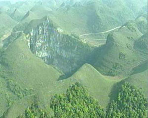 我国广西乐业县的天坑群是一个世界上极为罕见的喀斯特溶洞群,当地人把它们叫做“大石围”。它形成于6500万年前,形状犹如一个个巨大漏斗,隐藏在群山峻岭之中,经过初步考察已经认定这是目前世界上最大的天坑群。